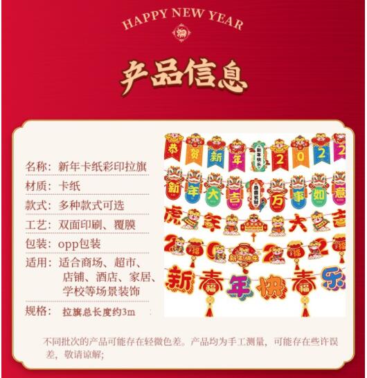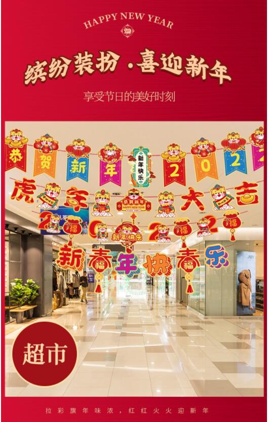 商品名称:美青 元旦装饰拉旗2022虎年大吉新年装饰挂饰卡通超市商场店铺装饰布置挂饰拉旗吊旗 新年拉旗五条装 商品编号:188071 品牌:新新精艺 上架时间:2021-12-24 商品毛重:0克