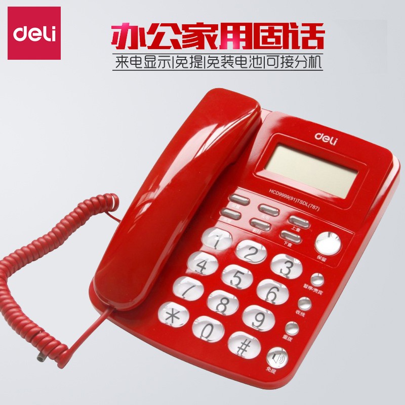 商品名称:得力(deli) 787来电显示办公家用电话机_固定电话_座机 耐磨不褪色 787红色 商品编号:188736 品牌:得力 上架时间:2022-01-19 商品毛重:0克
