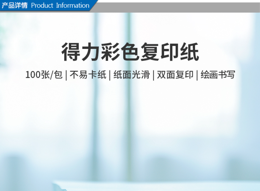 商品名称:得力(Deli)7758 A4彩色复印纸 深黄色 80G 100张/包 商品编号:188750 品牌:得力 上架时间:2022-01-20 商品毛重:0克