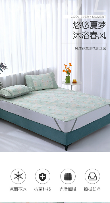 商品名称:水星家纺 凉席冰丝席三件套可折叠席子双人空调凉席1.8米床 风沐花意 商品编号:189757 品牌:水星家纺 上架时间:2022-03-07 商品毛重:0克