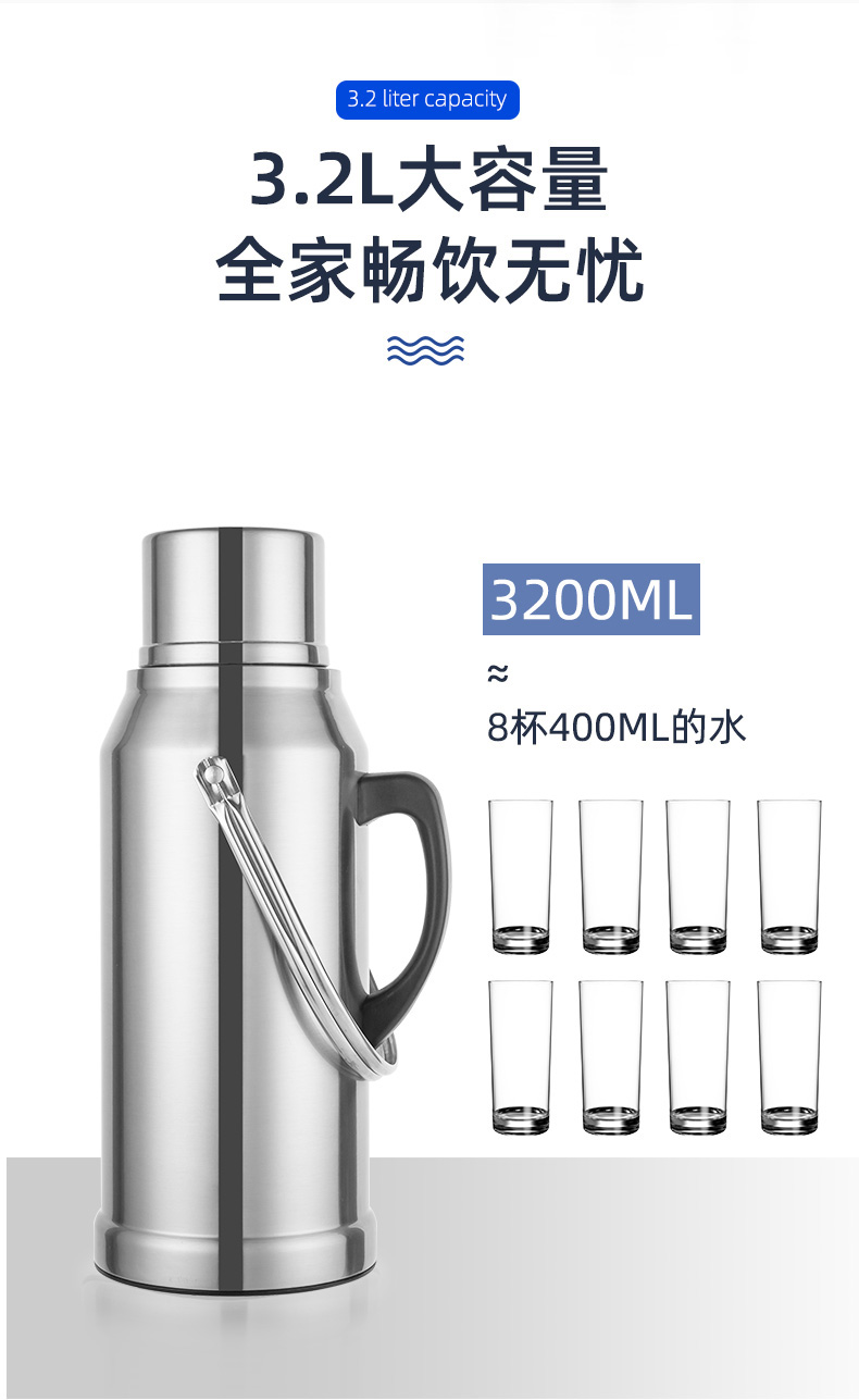 - 商品名称:天喜(TIANXI) 3.2L 保温壶暖壶大容量精钢水壶玻璃内胆暖瓶学生员工宿舍开水瓶(单位:个)