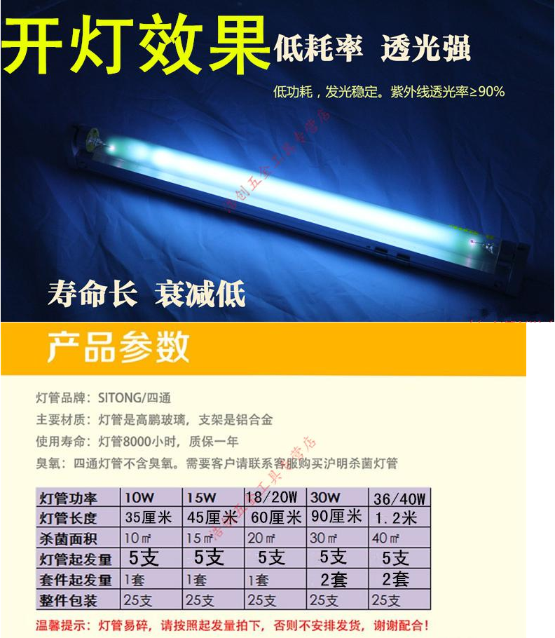 商品名称:T8四通高硼紫外线灯管消毒灯 36W(40W)长1.2米(5支起发) 商品编号:190041 品牌:四通 上架时间:2022-03-21 商品毛重:0克