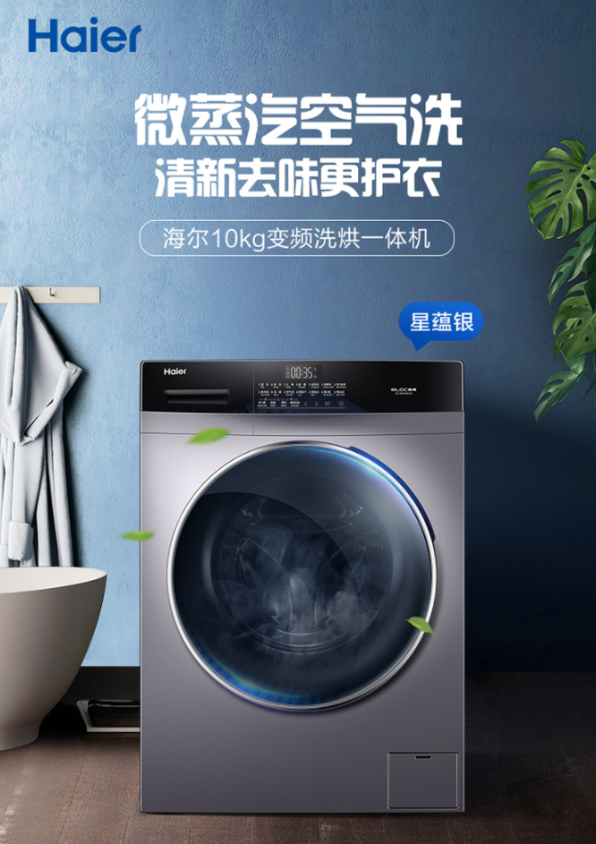 商品名称:海尔(Haier)滚筒洗衣机蒸汽除菌10KG洗烘一体变频EG100HBDC6S 商品编号:190123 品牌:海尔 上架时间:2022-03-22 商品毛重:0克