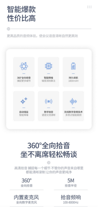 商品名称:海康威视HIKVISION视频会议全向麦克风 USB免驱 降噪消回音 会议话筒扬声器 蓝牙阵列麦克DS-65VA300W 商品编号:190142 品牌:海康威视 上架时间:2022-03-23 商品毛重:0克