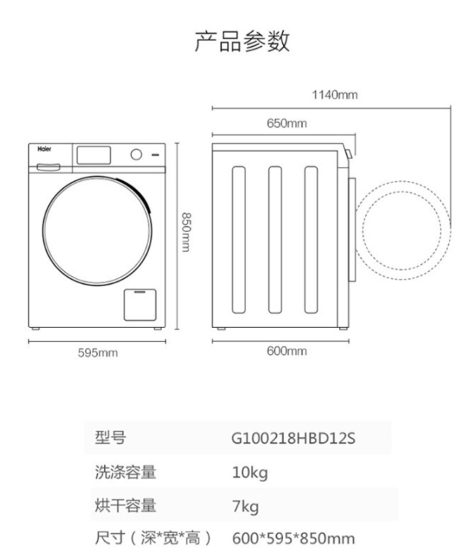商品名称:海尔10公斤变频洗烘一体家用大容量滚筒洗衣机G100218HBD12S 商品编号:190273 品牌:海尔 上架时间:2022-03-25 商品毛重:0克