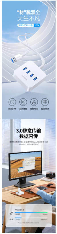- 商品名称:绿联USB3.0分线器 高速4口拓展坞 USB集线器HUB扩展坞 笔记本电脑一拖四多接口转换器转接头延长线1.5米30221
