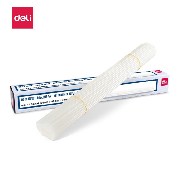 商品名称:得力3847装订铆管(透明)(100支/盒) 商品编号:190489 品牌:得力 上架时间:2022-04-08 商品毛重:0克