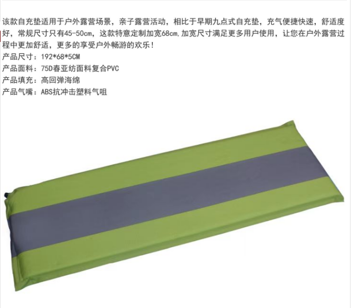 商品名称:北极熊品牌 加厚自充气式防潮垫 隔潮隔热防刮擦 户外便携充气垫 商品编号:190918 品牌:北极熊 上架时间:2022-04-18 商品毛重:0克