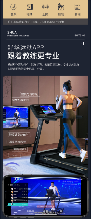 商品名称:舒华(SHUA)跑步机E9家用折叠减震智能微信互联SH-T5100素墨黑 商品编号:191036 品牌:舒华 上架时间:2022-04-20 商品毛重:0克
