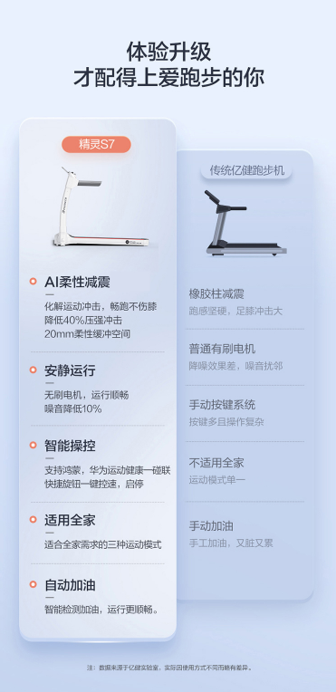商品名称:华为智选 亿健精灵S7智能跑步机家用 降噪可折叠 62cm宽大跑台APP控制 商品编号:191037 品牌:华为 上架时间:2022-04-20 商品毛重:0克