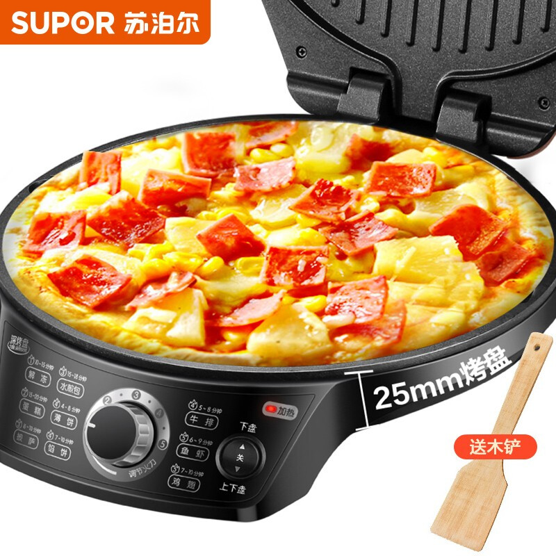 商品名称:苏泊尔(SUPOR)电饼铛家用 双面加热煎饼铛煎烤机三明治机烙饼锅早餐机25mm加深烤盘火力可调JD31A847 商品编号:191105 品牌:苏泊尔 上架时间:2022-04-20 商品毛重:0克