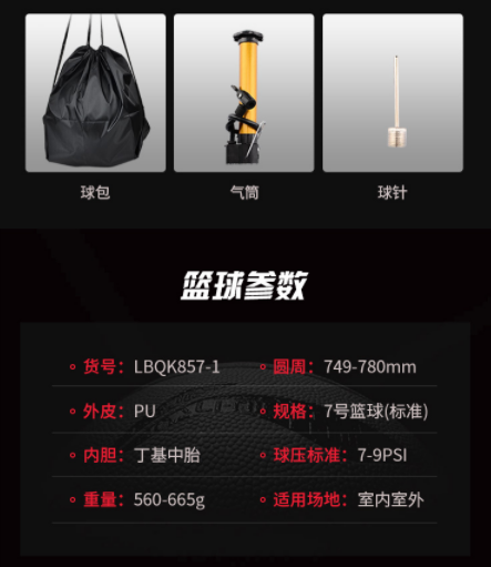 商品名称:LI-NING 李宁CBA赛事篮球防尘PU材质室内外掌控比赛 蓝球 LBQK857-1 商品编号:191330 品牌:李宁 上架时间:2022-04-24 商品毛重:0克
