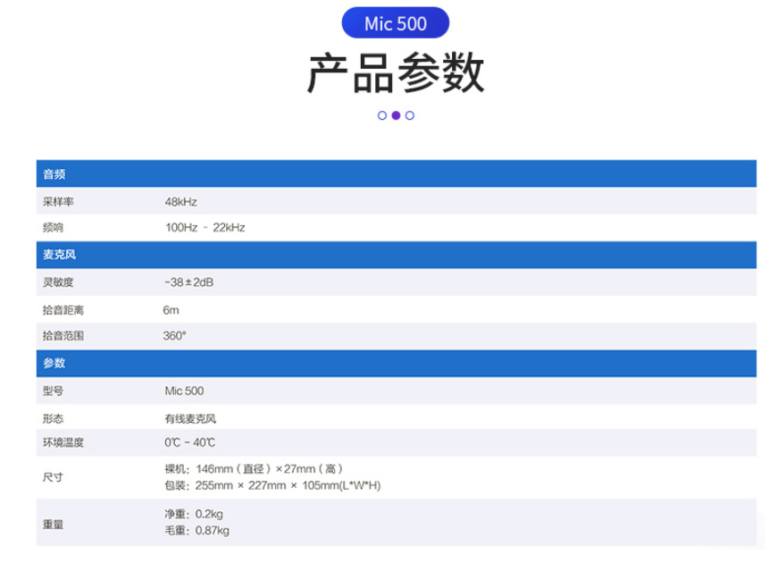 商品名称:华为(HUAWEI)CloudLink Mic500 智能阵列全向视频会议麦克风 商品编号:192085 品牌:华为 上架时间:2022-05-09 商品毛重:0克