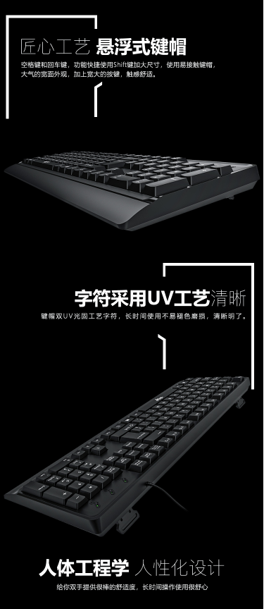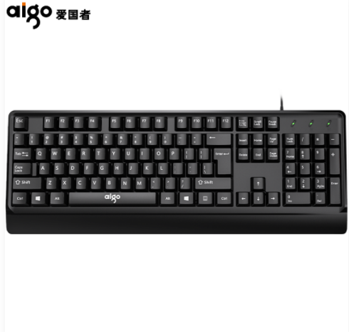 商品名称:爱国者(aigo) K100黑色 键盘 有线键盘 办公键盘 104键键盘 防溅水 笔记本外接台式机键盘 黑色 商品编号:192113 品牌:爱国者 上架时间:2022-05-10 商品毛重:0克