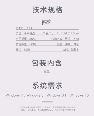 商品名称:双飞燕(A4TECH)FK11 飞时代有线小键盘 薄膜办公打字用键盘笔记本外接台式电脑 86键便携USB接口 象牙白 商品编号:192137 品牌:双飞燕 上架时间:2022-05-10 商品毛重:0克