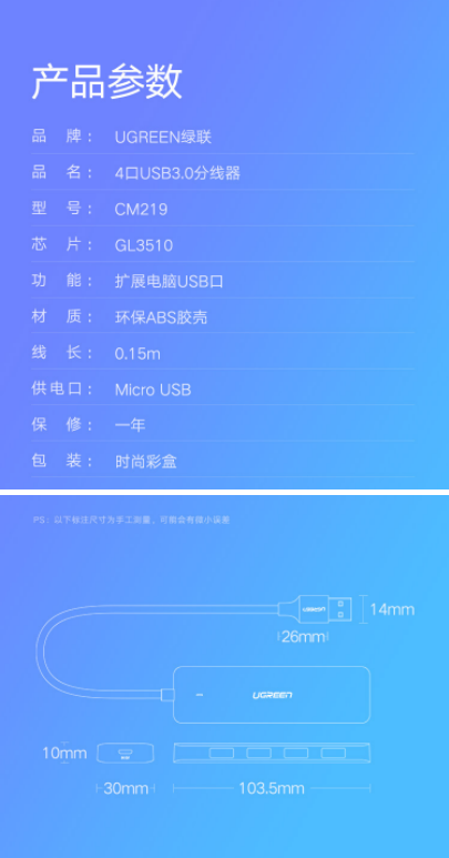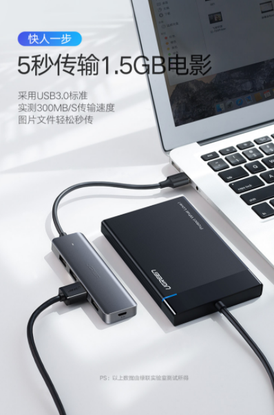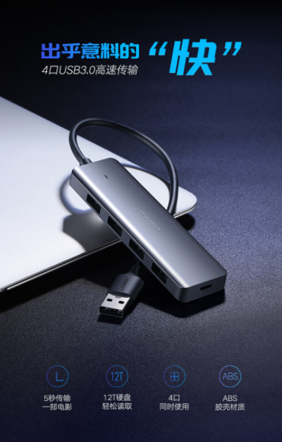 - 商品名称:绿联(UGREEN)50985 USB3.0分线器 高速4口HUB扩展坞转换器 电脑一拖四集线器延长线带电源接口 (个)