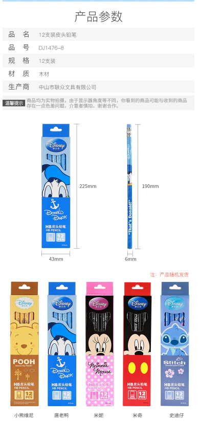 商品名称:迪士尼(Disney)文具12支HB原木书写铅笔 小学生铅笔写字笔 儿童卡通铅笔 迪士尼系列DJ1476 商品编号:192221 品牌:迪士尼 上架时间:2022-05-12 商品毛重:0克