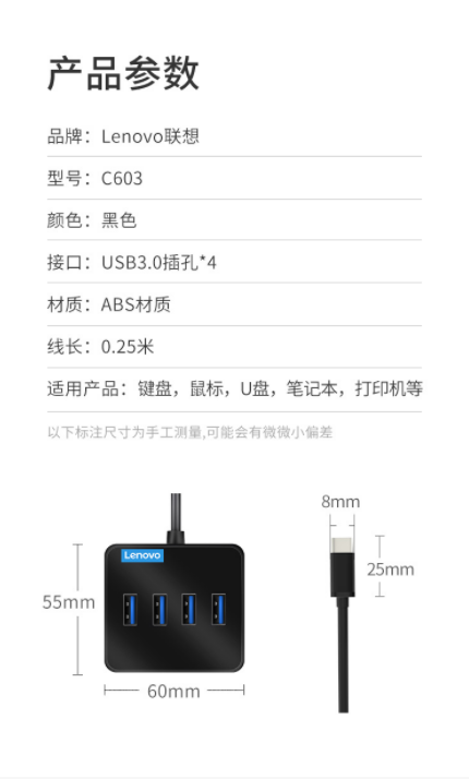 商品名称:联想(Lenovo)C603 Type-C转USB分线器 3.0接口转换器 4口扩展坞 转接头 HUB集线器 USB延长线 /0.25米 商品编号:192244 品牌:联想 上架时间:2022-05-13 商品毛重:0克