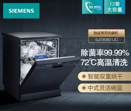 商品名称:西门子(SIEMENS) 12套大容量 家用除菌洗碗机独立式嵌入式 独嵌两用 SJ235B01JC(黑色) 商品编号:193105 品牌:西门子 上架时间:2022-06-08 商品毛重:0克