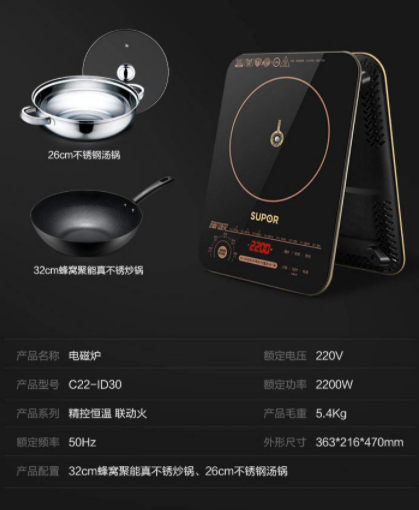 商品名称:苏泊尔 SUPOR电磁炉 超薄电磁灶电磁炉 触屏家用精控恒温 C22-ID30 商品编号:194087 品牌:苏泊尔 上架时间:2022-07-07 商品毛重:0克