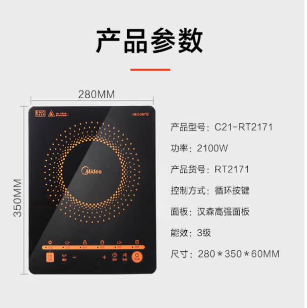 商品名称:美的(Midea)电磁炉多功能大功率 触控黑晶面板 智能暂停 4D防水 C21-RT2171 商品编号:194110 品牌:美的 上架时间:2022-07-07 商品毛重:0克
