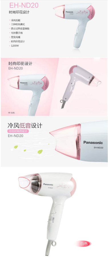 商品名称:松下panasonic 电吹风可折叠防过热冷风功能线长1.7米 电吹风EH-ND20-W405 商品编号:194429 品牌:松下 上架时间:2022-07-14 商品毛重:0克