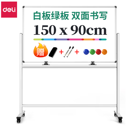 商品名称:得力(deli)高端系列白板绿板双面支架式白板150*90cmH型可移动可翻转磁性家用教学办公白板黑板写字板50096 商品编号:194598 品牌:得力 上架时间:2022-07-20 商品毛重:0克