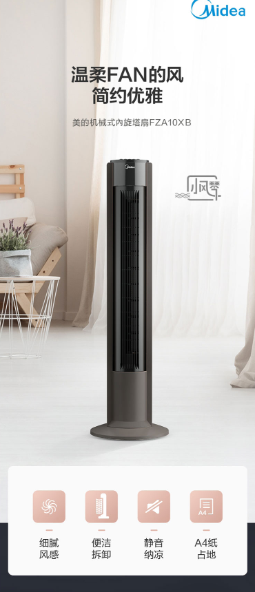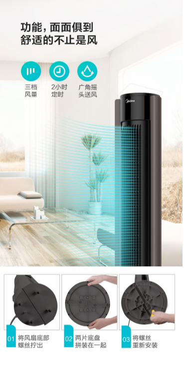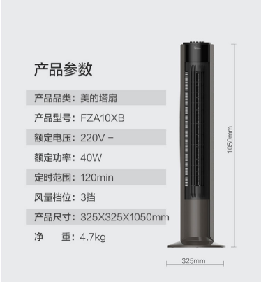 商品名称:美的(Midea)塔扇/电风扇 摇头 家用立式电风扇 FZA10XB 商品编号:194671 品牌:美的 上架时间:2022-07-21 商品毛重:0克