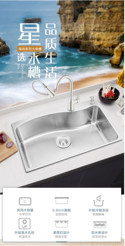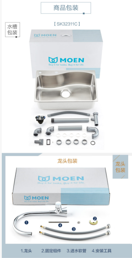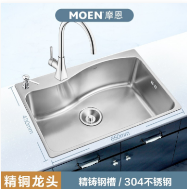 商品名称:摩恩(MOEN)304不锈钢家用厨房水槽套餐 水池洗菜盆洗碗池 650MM大单槽 精铜净铅高抛冷热水龙头 商品编号:194911 品牌:摩恩 上架时间:2022-08-01 商品毛重:0克