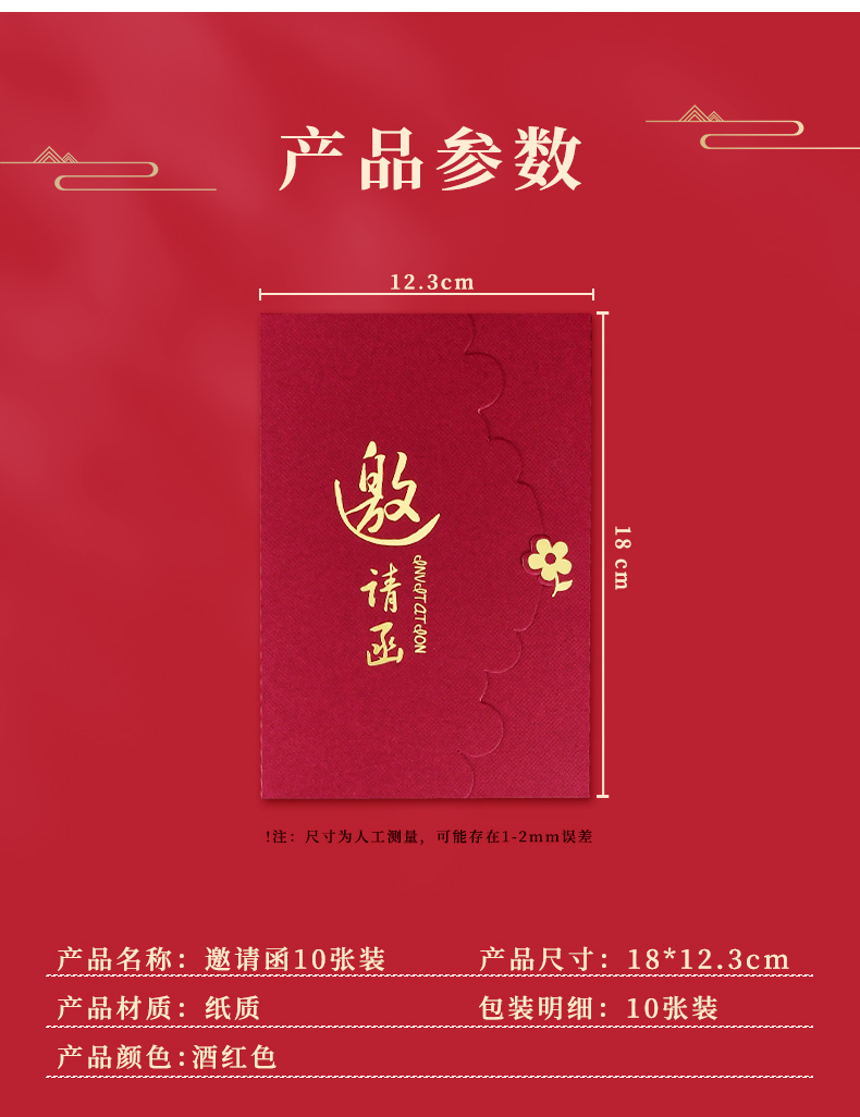 商品名称:新新精艺结婚请柬邀请函公司活动年会开业商务会议请帖 结婚生日满月百天新年邀请柬 10张装 商品编号:195749 品牌:新新精艺 上架时间:2022-09-05 商品毛重:0克