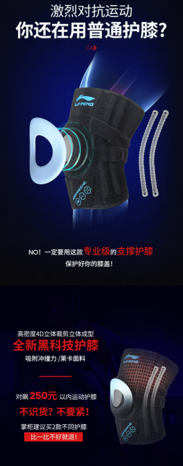 商品名称:李宁运动护膝男女加压弹簧支撑膝盖髌骨护具 商品编号:196169 品牌:李宁 上架时间:2022-09-21 商品毛重:0克