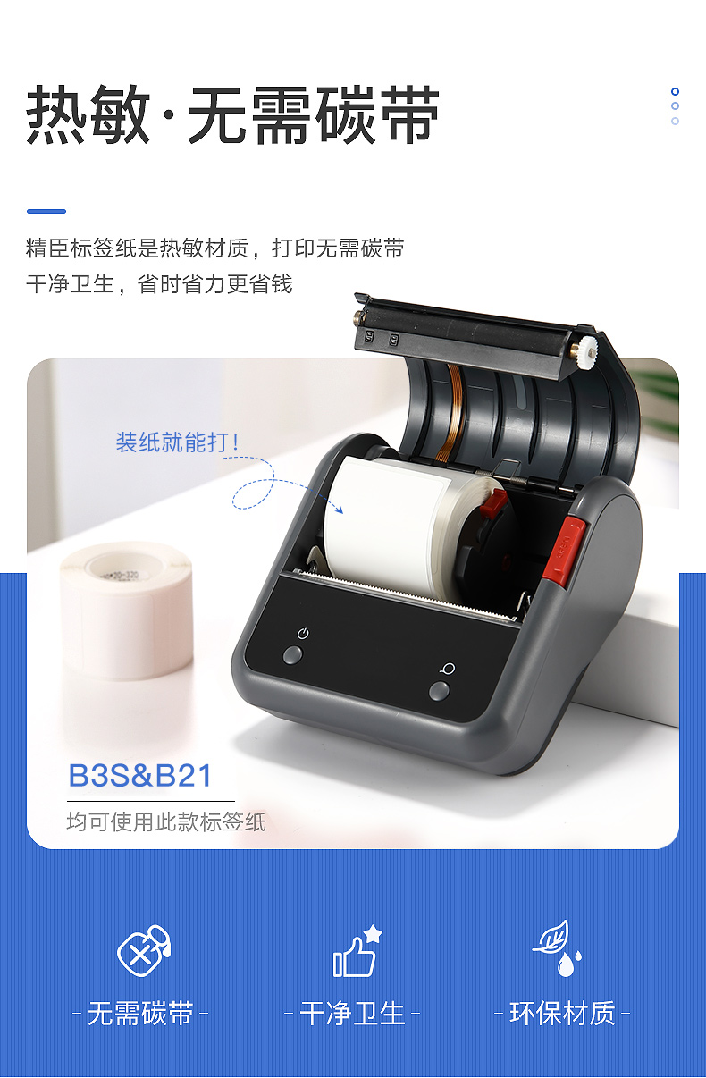 商品名称:精臣 B1 B3S B21标签机打印纸热敏标签(20)50*20*320张 白色(单卷) 商品编号:197086 品牌:精臣 上架时间:2022-10-17 商品毛重:0克