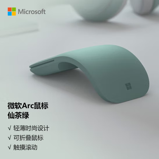 - 商品名称:微软 (Microsoft) Arc 鼠标 仙茶绿 弯折设计 轻薄便携 全滚动平面 蓝影技术 蓝牙鼠标 人体工学 办公鼠标