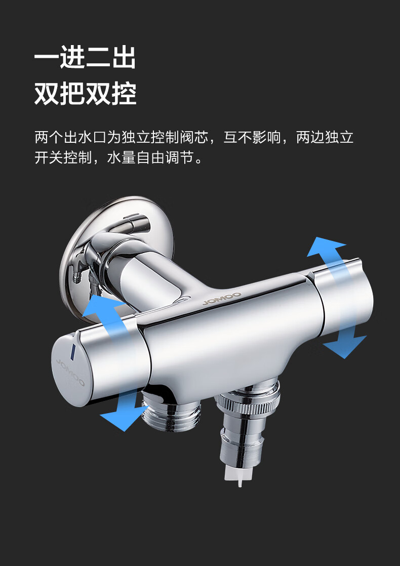 商品名称:九牧三通角阀一进二出三通阀带双开关分水阀素双头双控双用三角阀