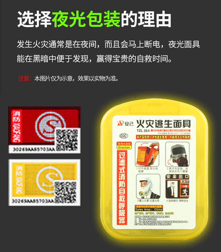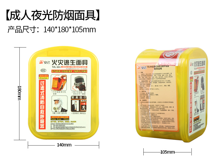 商品名称:夜光消防过滤式自救呼吸器TZL30儿童家庭火灾逃生防烟防毒面具 商品编号:197784 品牌:安己 上架时间:2022-11-01 商品毛重:0克