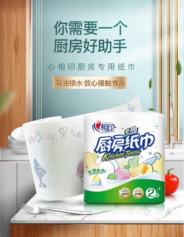 商品名称:心相印卷纸/厨房卷纸【肖战推荐】吸油吸水厨房用纸75节*8卷纸巾 加厚擦手纸 食品接触级 商品编号:197905 品牌:心相印 上架时间:2022-11-04 商品毛重:0克