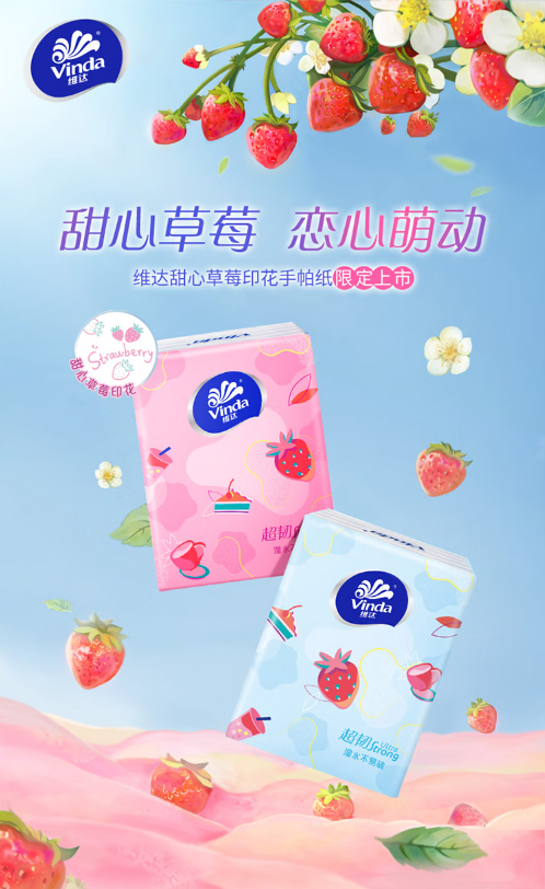 商品名称:维达(Vinda)手帕纸 超韧4层5张24包 纸巾印花 甜心莓莓 纸巾小包 湿水不易破 便携出行 商品编号:198205 品牌:维达 上架时间:2022-11-21 商品毛重:0克