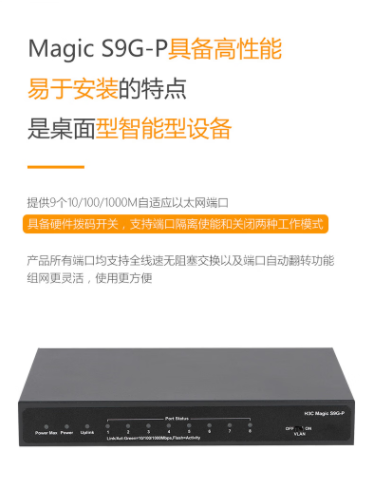商品名称:H3C Magic S9G-P 8口千兆POE供电交换机 商品编号:198457 品牌:新华三 上架时间:2022-11-30 商品毛重:0克