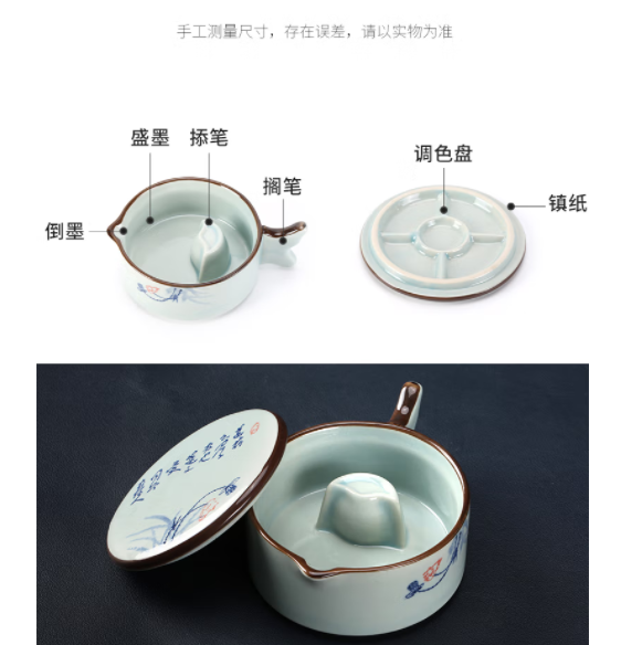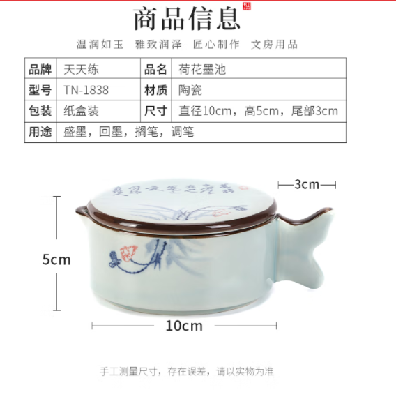 商品名称:天天练(Tiantianlian)荷花墨池 带盖砚台墨海陶瓷水洗笔掭墨碟文房四宝 TN-1838
