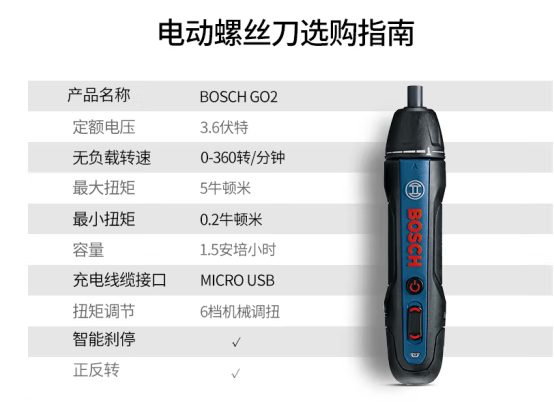 商品名称:博世(BOSCH)Bosch GO 2 充电式锂电电动螺丝刀 商品编号:198507 品牌:博世 上架时间:2022-12-03 商品毛重:0克