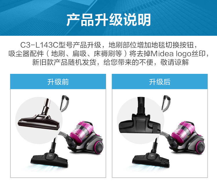 商品名称:美的(Midea)吸尘器C3-L143C家用吸尘器 卧式吸尘器 大吸力 商品编号:198996 品牌:美的 上架时间:2023-02-02 商品毛重:0克