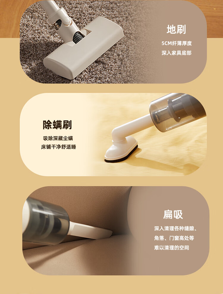商品名称:小熊(Bear)无线吸尘器 轻量化立式手持吸尘器 大吸力床上除螨五重过滤 XCQ-B01V1橙色 商品编号:199009 品牌:小熊 上架时间:2023-02-06 商品毛重:0克