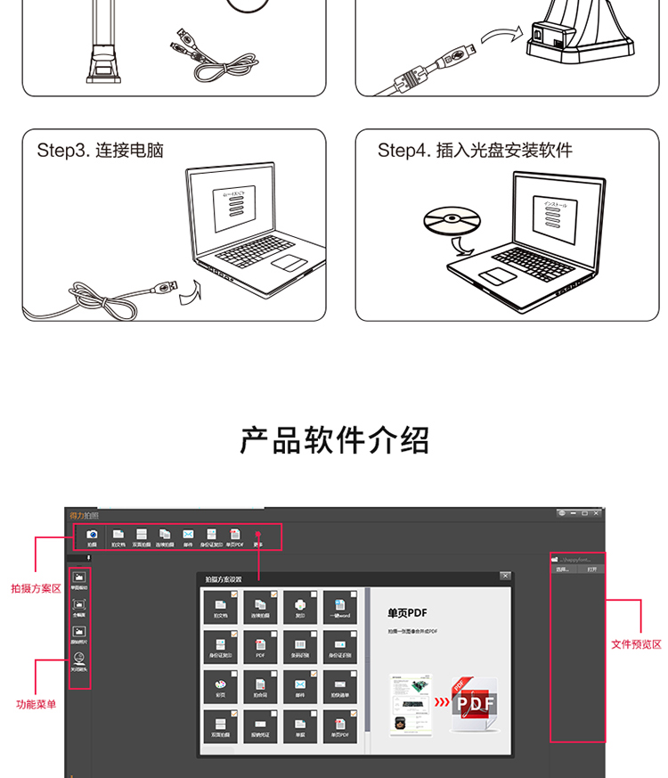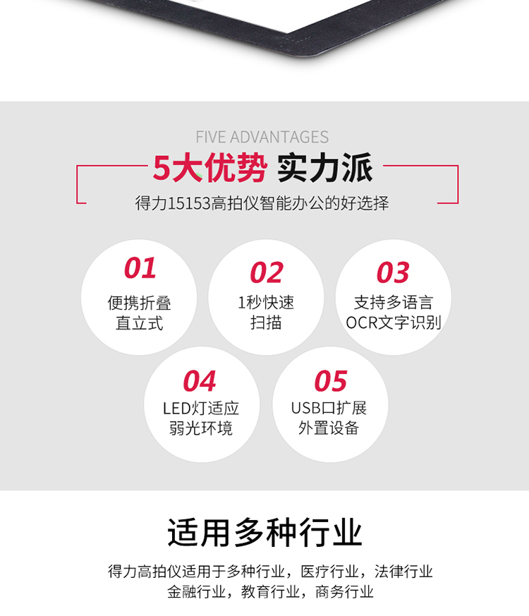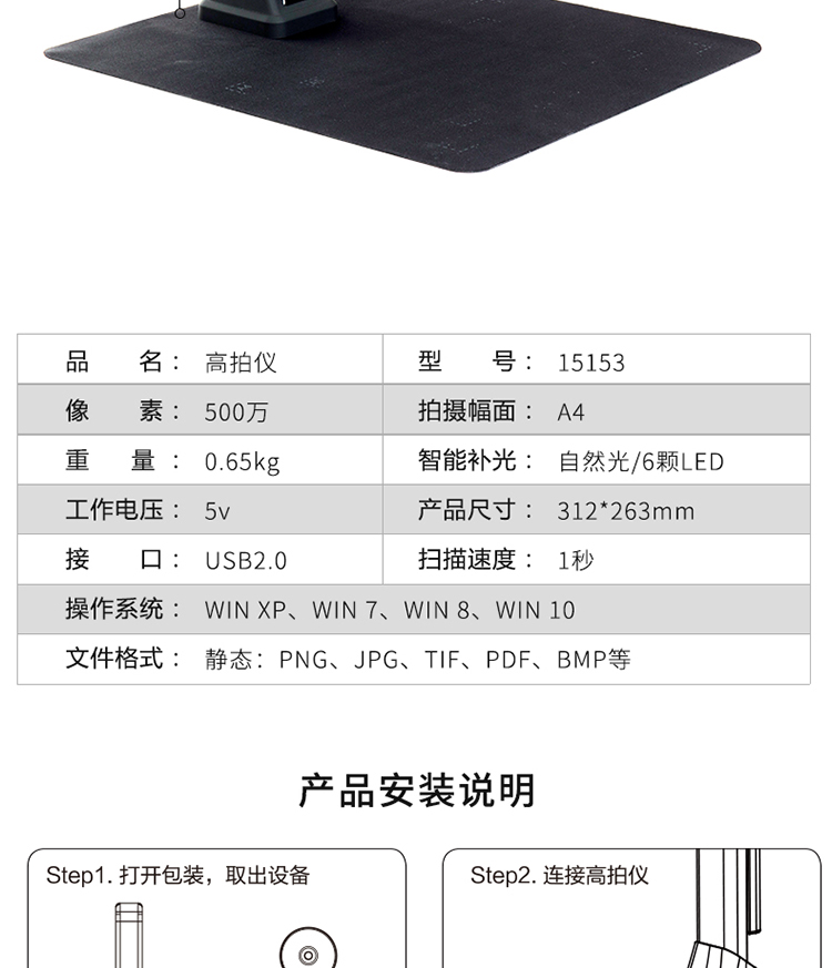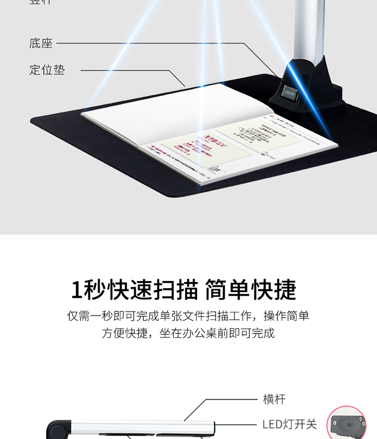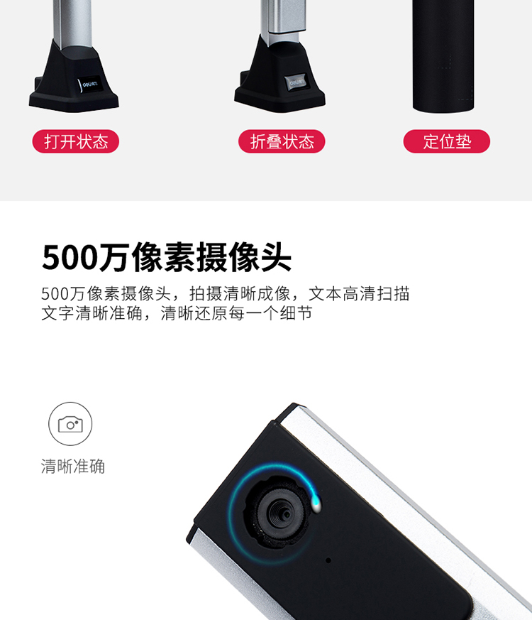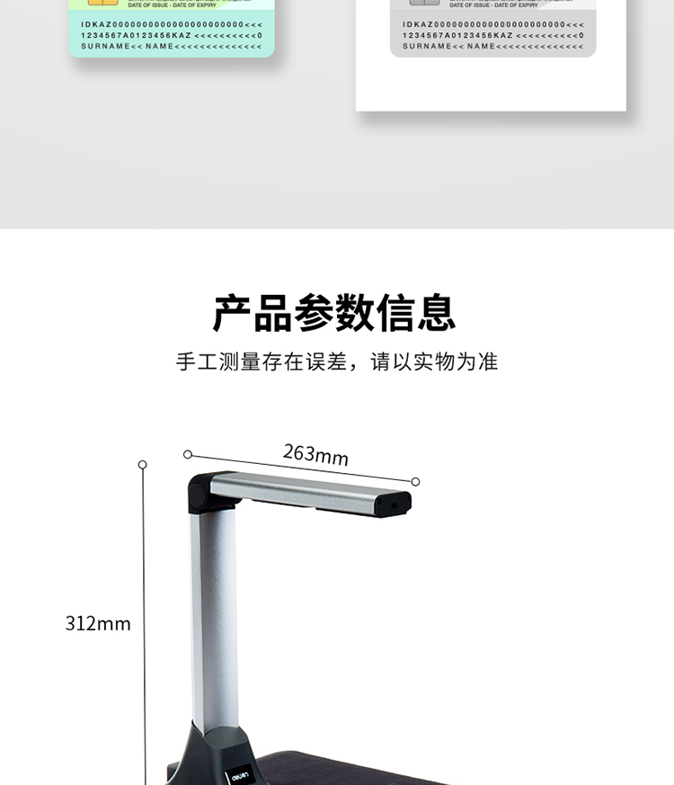 商品名称:得力 高拍仪 500万像素高拍仪 A4幅面照片身份证高速扫描仪15153 商品编号:199240 品牌:得力 上架时间:2023-02-14 商品毛重:0克