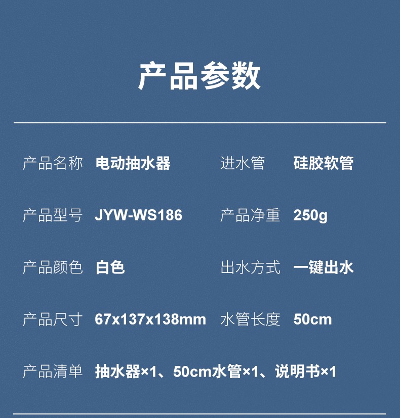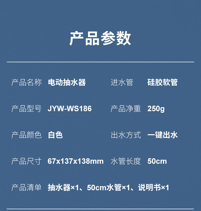 商品名称:九阳(Joyoung)桶装水纯净水桶抽水器饮水机泵电动压水器吸水器家用上水器白色JYW-WS186