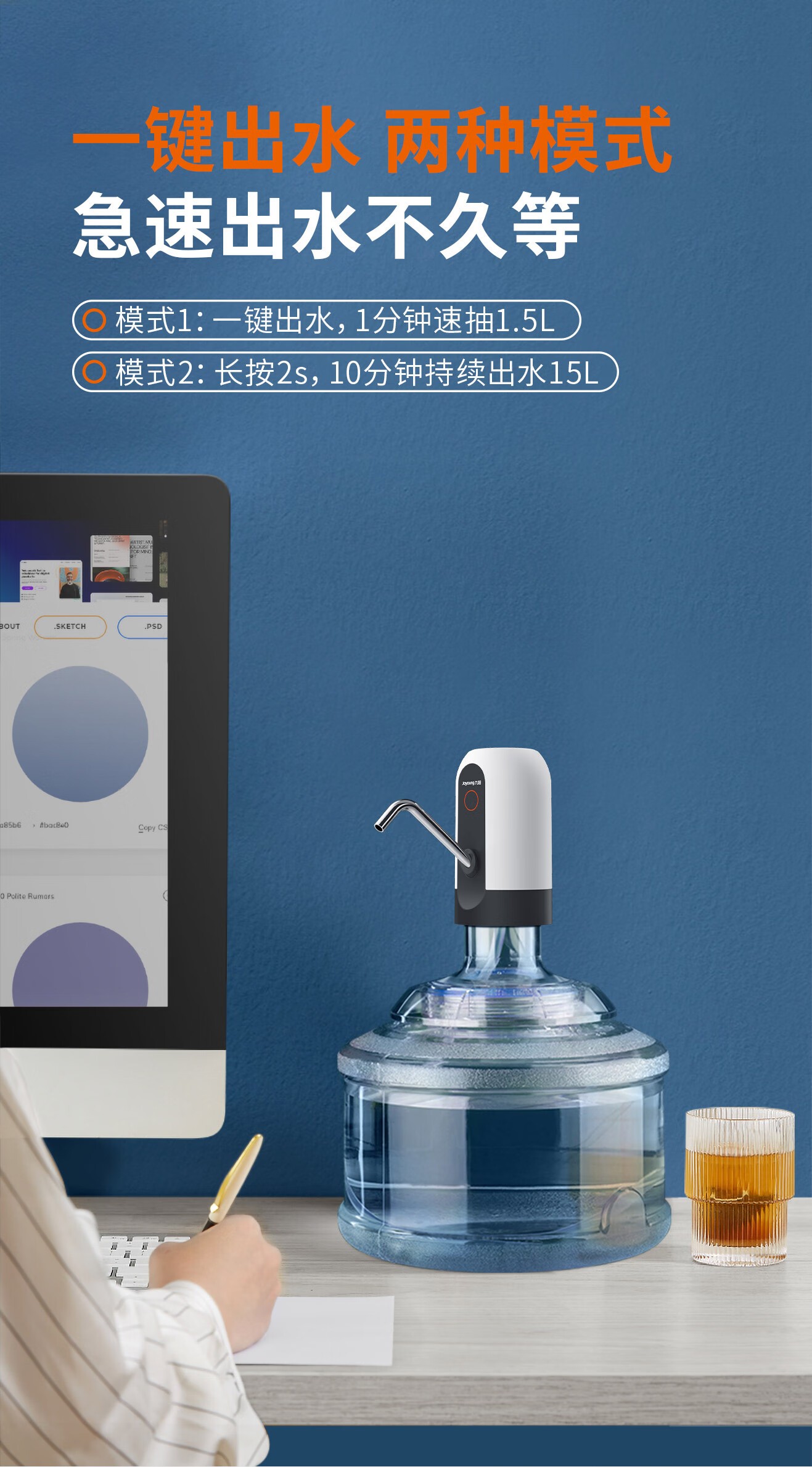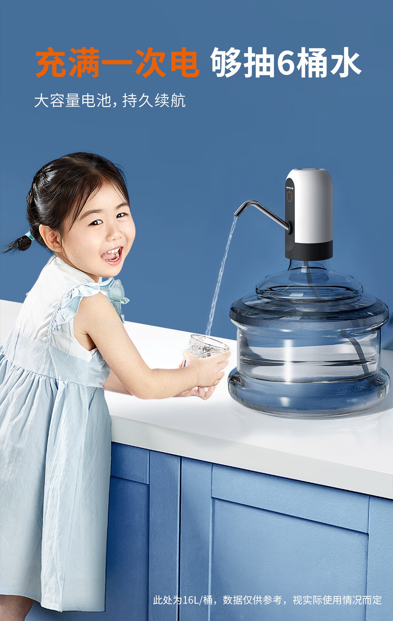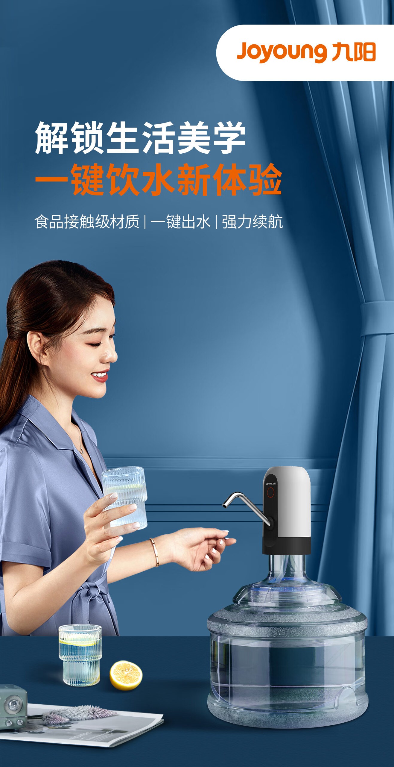 九阳(Joyoung)桶装水纯净水桶抽水器饮水机泵电动压水器吸水器家用上水器JYW-WS182蓝