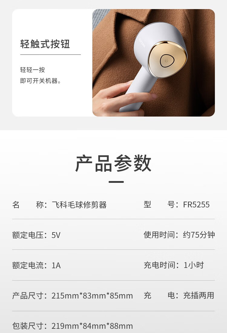 商品名称:飞科毛球修剪器起球器去毛球器衣服家用剃球器剃毛机除毛器打毛器吸球器去球器FR5255 商品编号:199676 品牌:飞科 上架时间:2023-02-24 商品毛重:0克