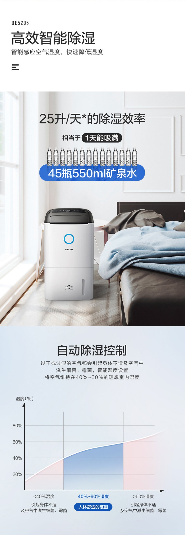 商品名称:飞利浦 (PHILIPS) 空气净化器除湿一体机(除湿/净化/干衣) 除湿机家用抽湿机25L/天干衣机DE5205/00 商品编号:200295 品牌:飞利浦 上架时间:2023-03-02 商品毛重:0克