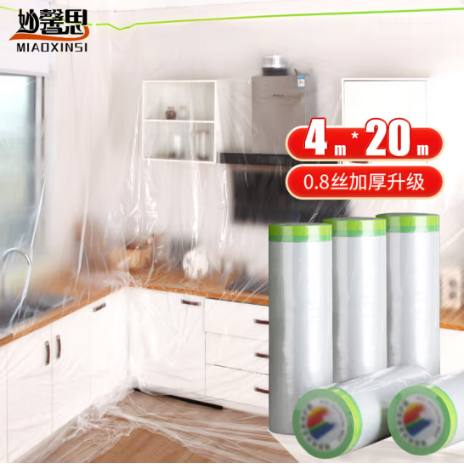 商品名称:妙馨思一次性防尘布防尘膜塑料膜刷漆装修家具保护膜床垫遮盖遮灰布盖布床罩塑料布防护膜薄膜防灰尘膜罩4m*20m 商品编号:200673 品牌:妙馨思 上架时间:2023-03-07 商品毛重:0克