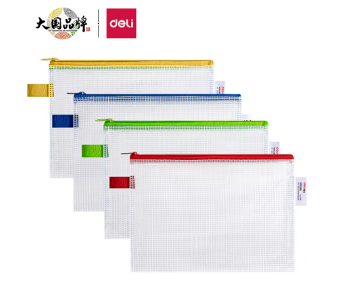 商品名称:得力(deli)12只 A5透明文件袋/网格拉链袋 财务凭证收纳 试卷收纳 防水 5591颜色随机 商品编号:200808 品牌:得力 上架时间:2023-03-08 商品毛重:0克