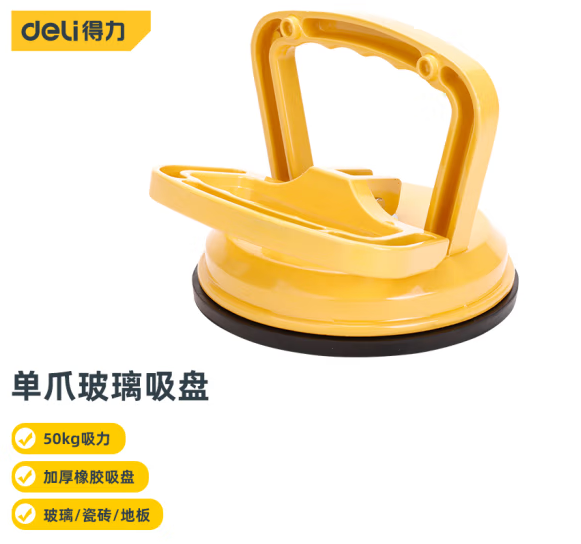 商品名称:得力(deli)单爪玻璃吸盘铝合金强力瓷砖吸盘吊顶地板吸提器 DL-XP01 商品编号:201200 品牌:得力 上架时间:2023-03-13 商品毛重:0克